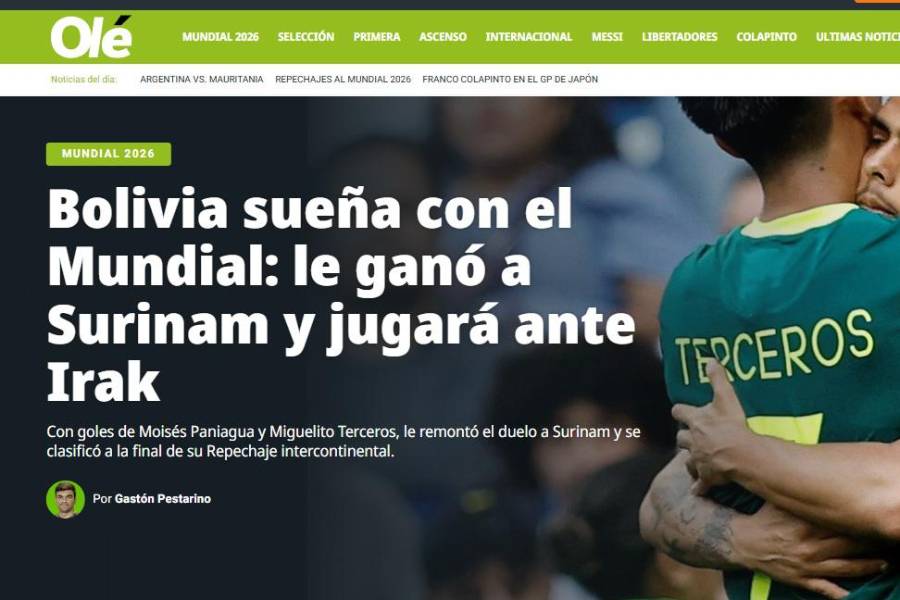 “El sueño está vivo. El sueño está intacto. El sueño de volver a un Mundial después de 32 años sigue de pie para Bolivia”, refleja el resumen de la web de Olé (Argentina).