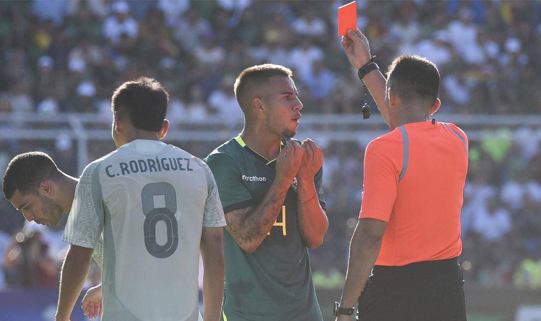 El volante boliviano Robson Matheus fue expulsado a los 82 minutos del partido ante México.