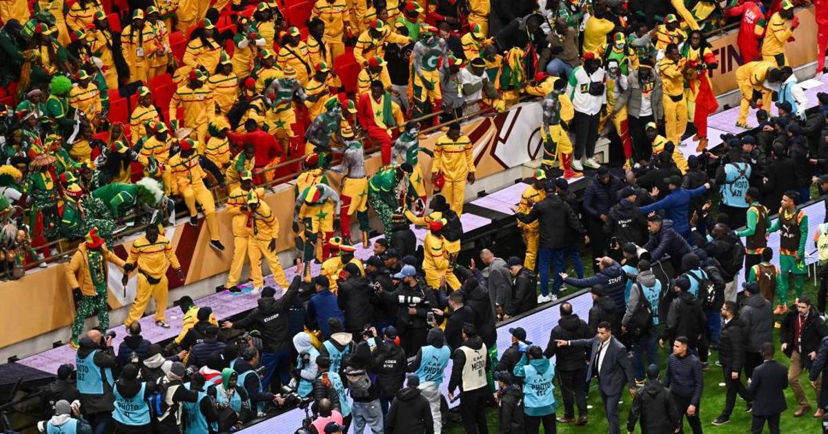 Varios aficionados senegaleses lanzaron objetos al terreno de juego, incluyendo una silla. Poco antes, los jugadores y el entrenador de Senegal habían abandonado el campo para protestar por un penal pitado a favor de Marruecos en los últimos segundos del tiempo añadido.